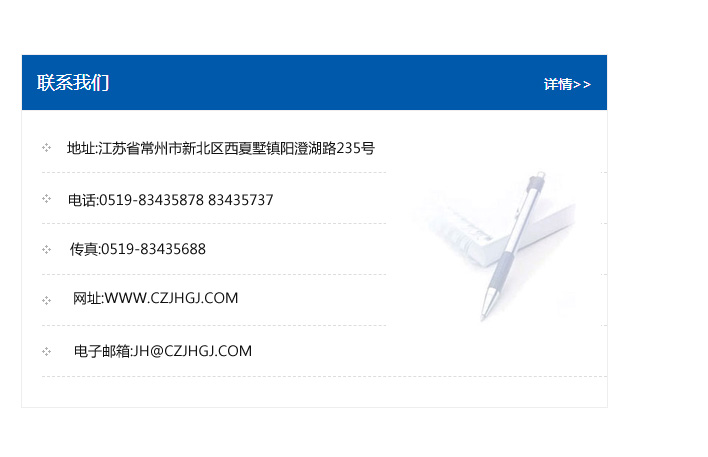 傳真:0519-83435688    郵編:213135    網址:WWW.czjhgj_com.xnjtdxw.com    電子郵箱:JH@czjhgj_com.xnjtdxw.com